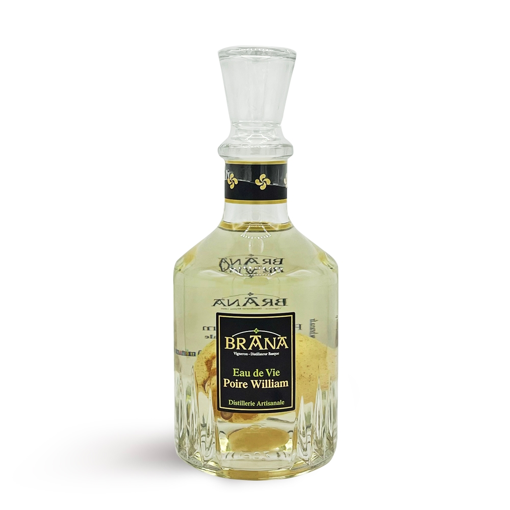 Brana sublime la poire à travers sa célèbre « Poire Prisonnière », où le fruit entier est enfermé dans la bouteille avant distillation. Chaque poire, mûrie à point, apporte ses arômes frais et délicats, amplifiés par une distillation artisanale en alambic de cuivre. Le nez mêle notes de poire juteuse, fleurs blanches et touches légèrement épicées. La bouche, veloutée et longue, enveloppe le palais avec une douceur fruitée et une finale élégante et persistante. Cette eau-de-vie se savoure pure, sur glace, ou comme touche raffinée dans un dessert ou un cocktail.
