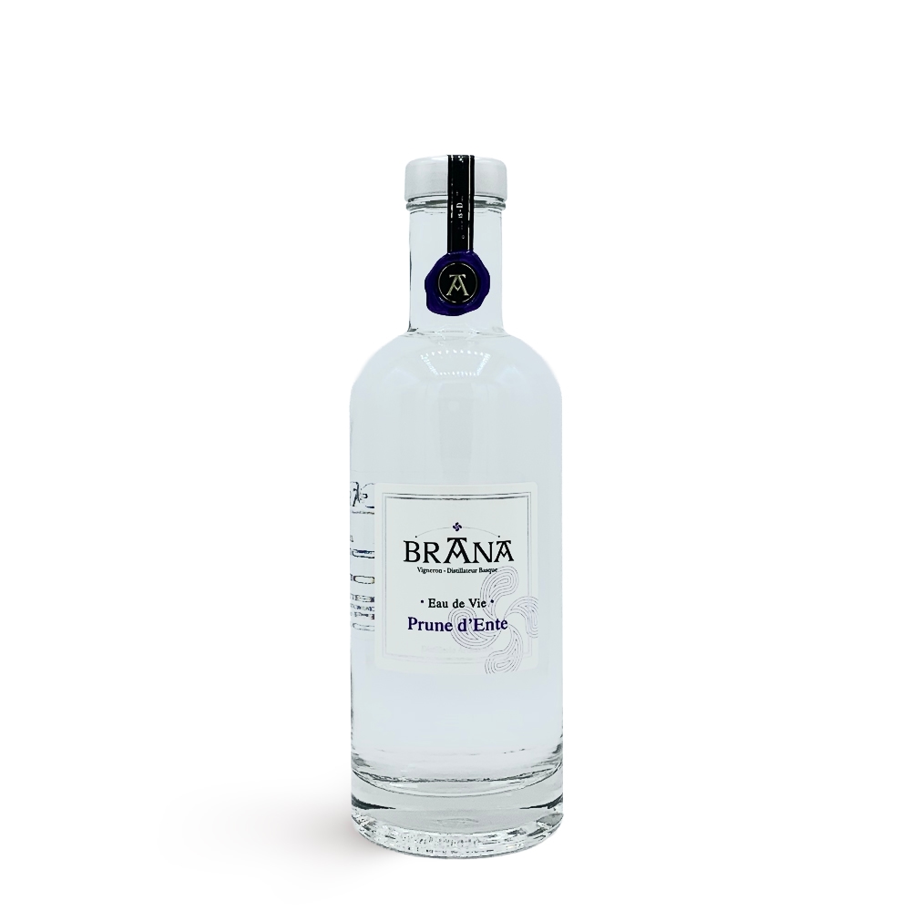 Cette eau‑de‑vie de Prune d’Ente « Cristalline » de la Maison Brana est élaborée artisanalement dans le Pays Basque à partir de prunes d’Ente soigneusement triées à leur optimum de maturité. La fermentation se déroule en cuves inox sous contrôle des températures, puis la distillation lente en alambics de cuivre à repasse capture l’expression la plus pure et la finesse aromatique du fruit, sans vieillissement en bois afin de préserver toute la fraîcheur fruitée du distillat.