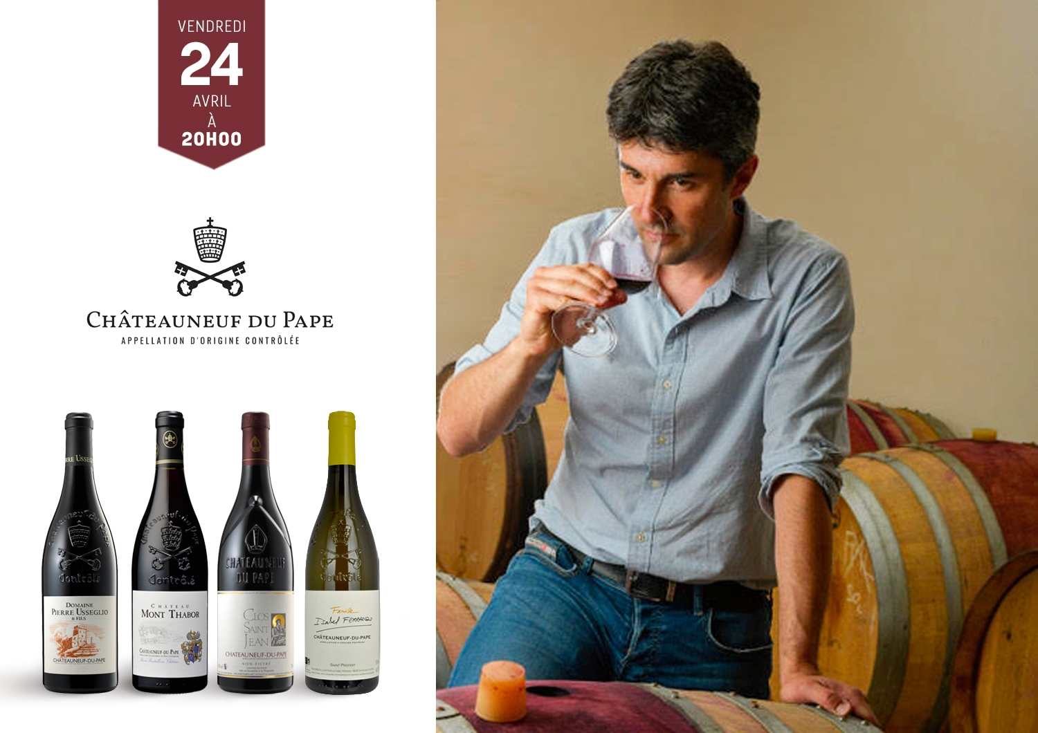 Réservez vite votre place pour cette présentation inédite et pédagogique, comprenant la dégustation et le buffet (participation 25 €). En fin de soirée, vous gagnerez peut-être l’une des bouteilles dégustées lors de notre tirage au sort.